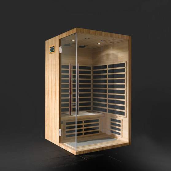 ИК-сауна данной модели из канадского хемлока с широкой закаленной стеклянной дверью отлично будет смотреться в любом интерьере.